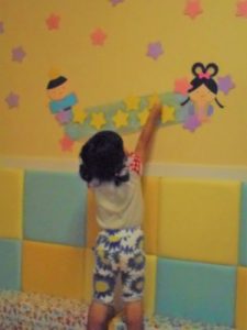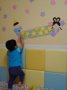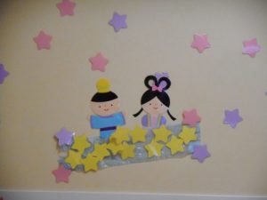 次は、きらきらぼしの歌に合わせてみんなで天の川にお星さまを貼ってもらいました♪