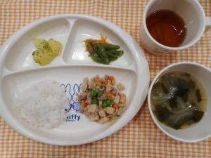 ☆今日の給食☆ひき肉とナスの味噌炒め☆ ☆本日の離乳食☆ひき肉とナスの味噌炒め☆