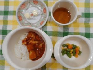 ☆本日の給食☆チキンのハヤシシチュー☆ ☆本日の離乳食☆チキンのシチュー☆