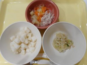 ☆本日の離乳食☆クリームシチュー・混ぜ混ぜサラダ☆