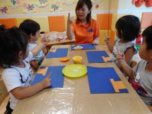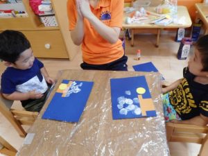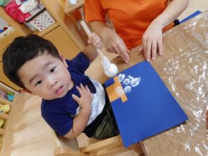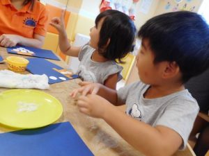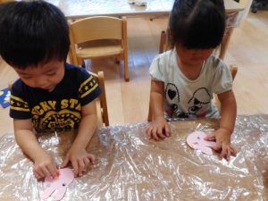 2歳児さんは、のりの使い方も教えてもらいましたよ♪