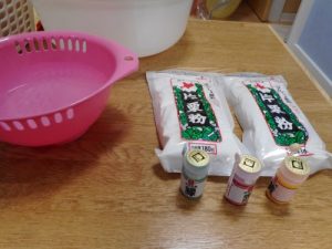 そして、準備する物は【片栗粉】【食紅】【お水】