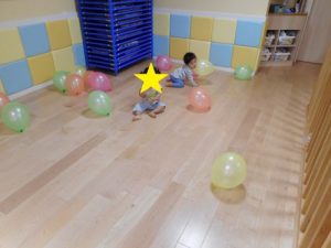 0歳児さんは、バルーンルームで伸び伸びと風船を追いかけて遊んでました?