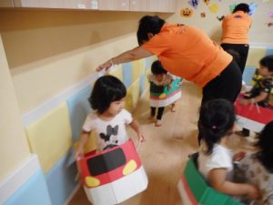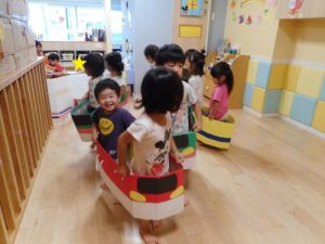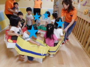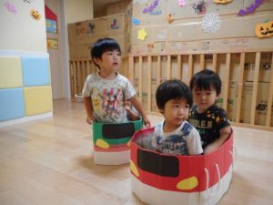 先生たちが一生懸命作ってくれたかっこいいかっいい【電車】に乗りました♪