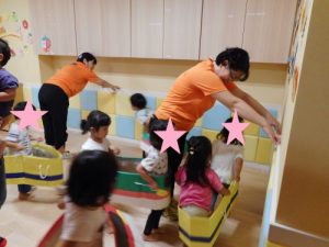 今日のブロックはニューブロック☆ですが、絵本を読んでももちろんOK☆好きな遊びをしてのんびり遊びます♪
