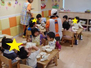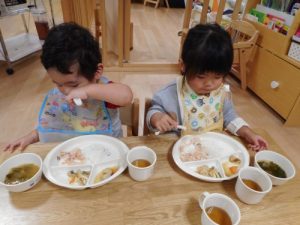 今日は保育園での【給食の様子】お伝えしたいと思います(^^♪