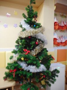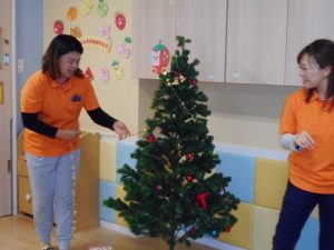 園内に【クリスマスツリー?】を設置するためにツリーの飾り付けと【点灯式】をしました♪