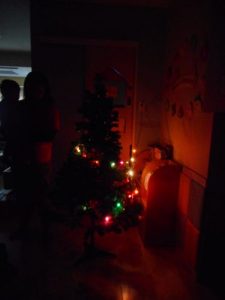部屋が真っ暗になって、きれいな電気がピカピカピカ♪