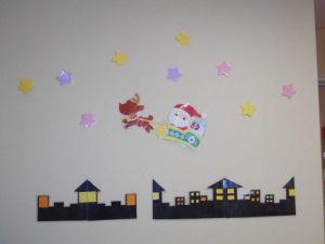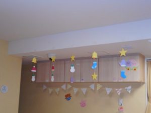 キラキラの飾りをもっとつけよう♪ということで、先生たちがキラキラの飾りをつけてくれました~♪