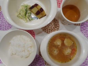 ☆本日の給食☆肉団子のスープ・さつま芋の甘煮☆