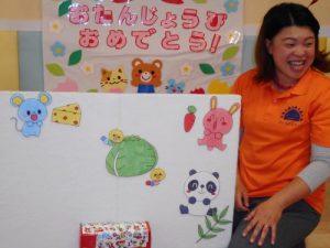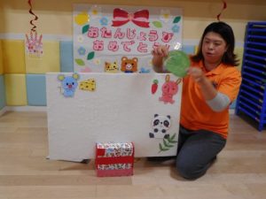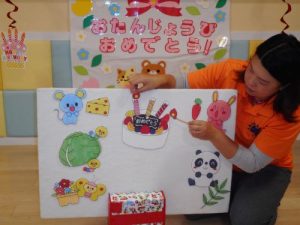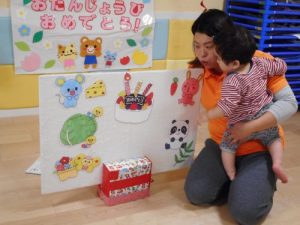 今回のお誕生日会は1才になった0歳児クラスのお友達のお祝いでした♪