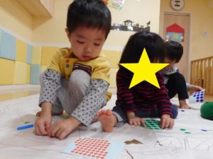シール貼りは指先を使う活動としてもとっても良いんですよ(*’▽’)?