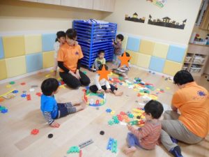 0歳児さんも1歳児さんも2歳児さんもみんな一緒に遊びます♪