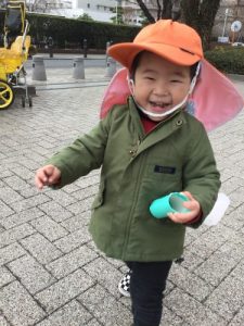 中々、うまく袋に風が入らず凧が上がりませんでしたが、とても楽しそうなこの笑顔(*´▽`*)?