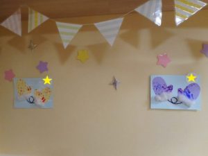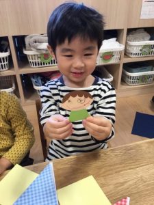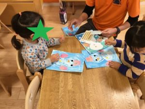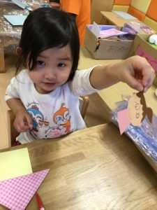 乾いたら、次は顔をシールで貼りました(*’▽’)♪
