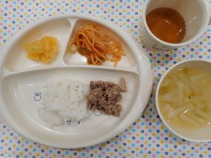 ☆本日の給食☆豆腐のハンバーグ・切り干し大根の煮物☆