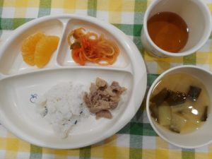 ☆本日の給食☆豚肉のケチャップソテー・ツナポテトサラダ☆