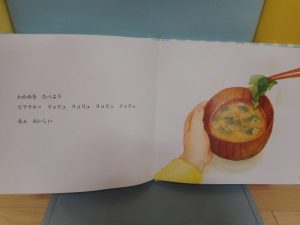 今日の絵本は【おいしいおと】という絵本です☆この絵本は、給食の前などによく先生が子ども達に読んでくれます♪