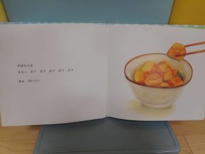 この本の後に給食を食べると、子ども達は〇〇の音がするね~♪と嬉しそうにたべたりしています(^^♪
