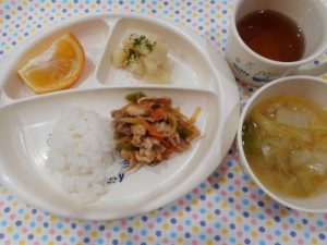 ☆本日の給食☆豚肉のケチャップソテー・ツナポテトサラダ☆