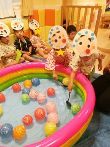 夏祭りの締めはヨーヨー釣り![]()