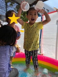 コップや器でおままごとをしたり、水鉄砲をしたりニコニコ笑顔で楽しんでましたよ![]()