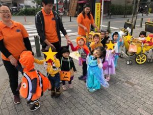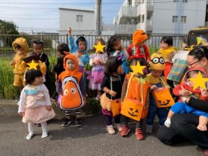 「トリック・オア・トリート!」をみんなで練習してから、