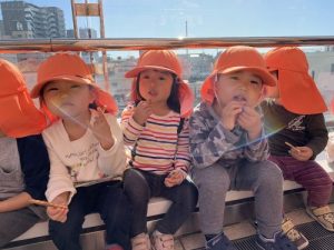 「飛行機いたー!」「大きなおうちだね~」などお友だちとおしゃべりしながら進んでいきます![]()