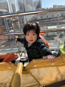 立ち乗りバギーも出し、みんなでバギーに乗って、ガタゴト相模大野駅までお散歩です![]()