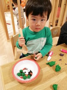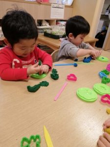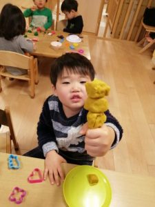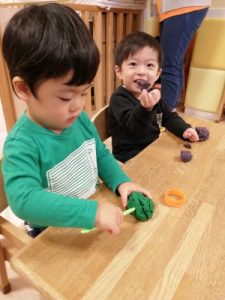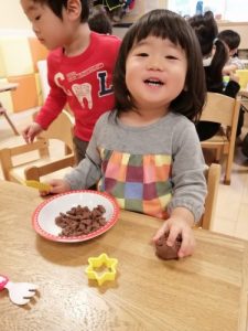 2歳児クラスともなると「何作ったの~?」と聞くと、喜んで教えてくれます![]()
