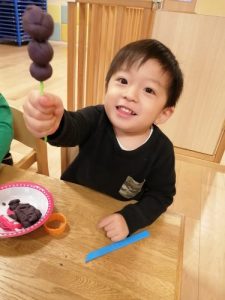 「おにく!」と言っていたものを串刺して「おだんご!」