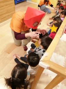 子どもたちも「すりかえかめんだ~!」と大興奮![]()