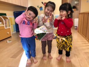 まずは、節分の絵本を読んでもらいました![]()