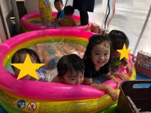 「暑いね~」と言いながらプールで水鉄砲をしていたのも、