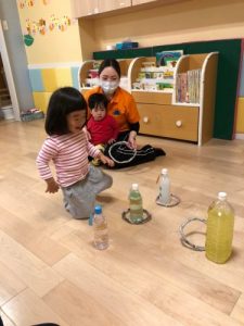 輪投げの輪っかもターゲットも先生の手作りです