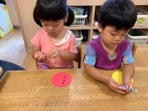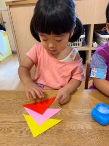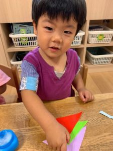 折り紙にノリをぺたぺた