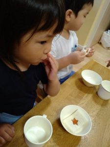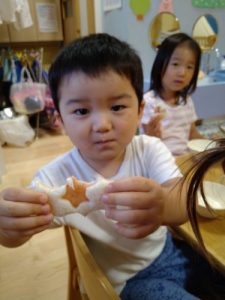 午後おやつは、星マーク付きのジャムサンド