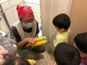調理員の先生からメッセージと共にとうもろこしが