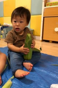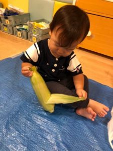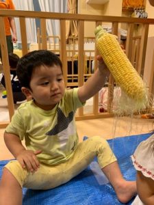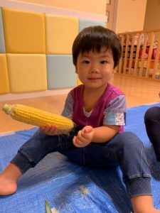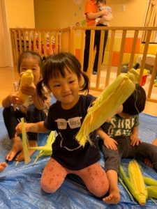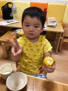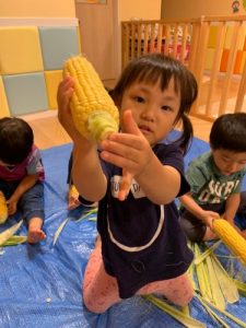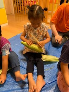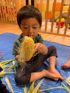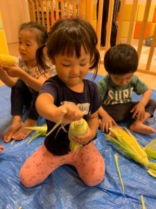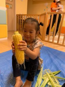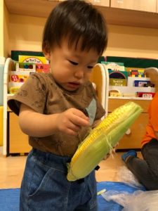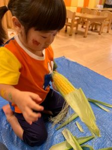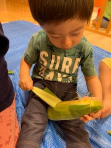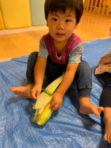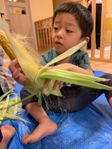 「とうもろこしの皮をむいてくれてありがとう!」