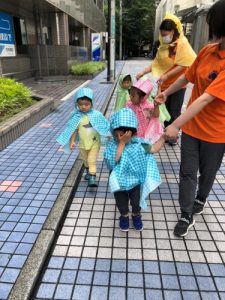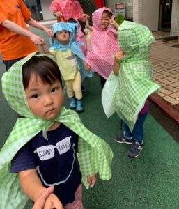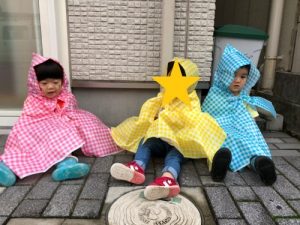 実は、なんとこのレインコート・・・保育士お手製なんです