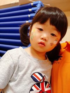 ほっぺにプロ技のペインティングをして