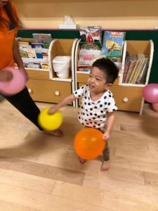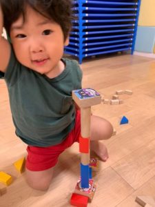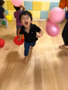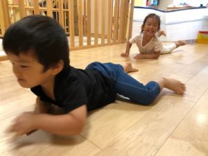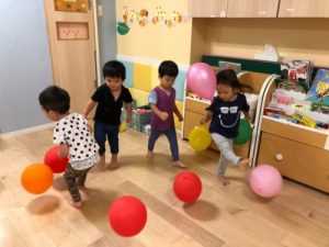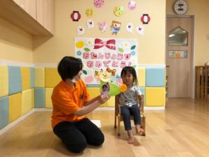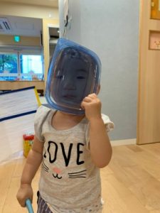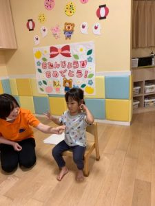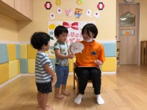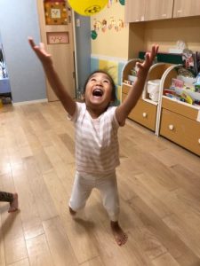 保育士がやり方のお話をしているときは、みんなドキドキしていて表情かためだったのですが・・・