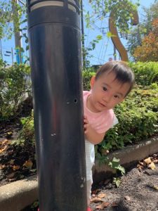 お散歩のときに、公園へもって行って遊んでいます![]()