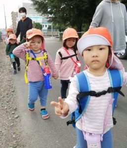 マイリュックをしょって、保育園からしゅっぱーつ