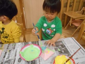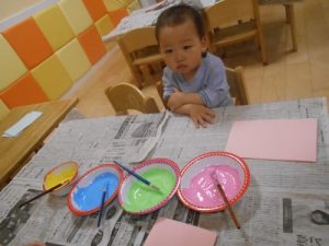 ちょっと手に絵の具を塗るのが怖いかな(^^?