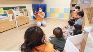 こんにちは(*^-^*) サンライズキッズ保育園相模原園です? 読み聞かせ中は、とっても集中していて...