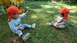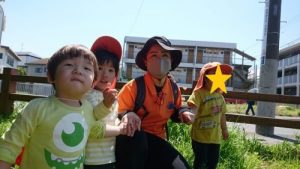 バギーの中から「いってきま~す!」と手を振ってくれるいちご組さん![]()