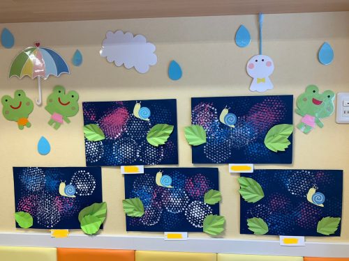 プチプチスタンプを押してできたのは、一面のあじさい![]()
