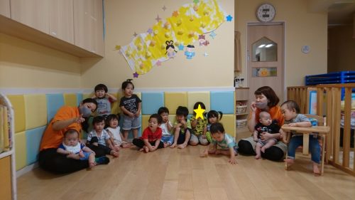 そして、七夕会は保育士の出し物で『たなばたバス』のお話を見ました?