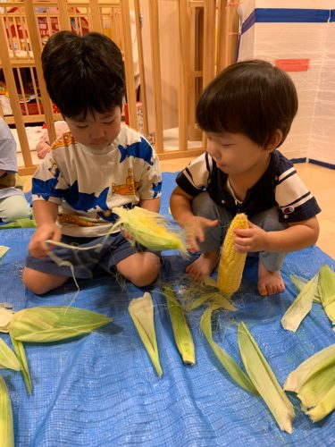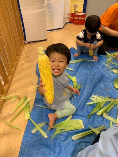 とうもろこしの粒が見えてくると、とっても嬉しそうなお顔を見せてくれました